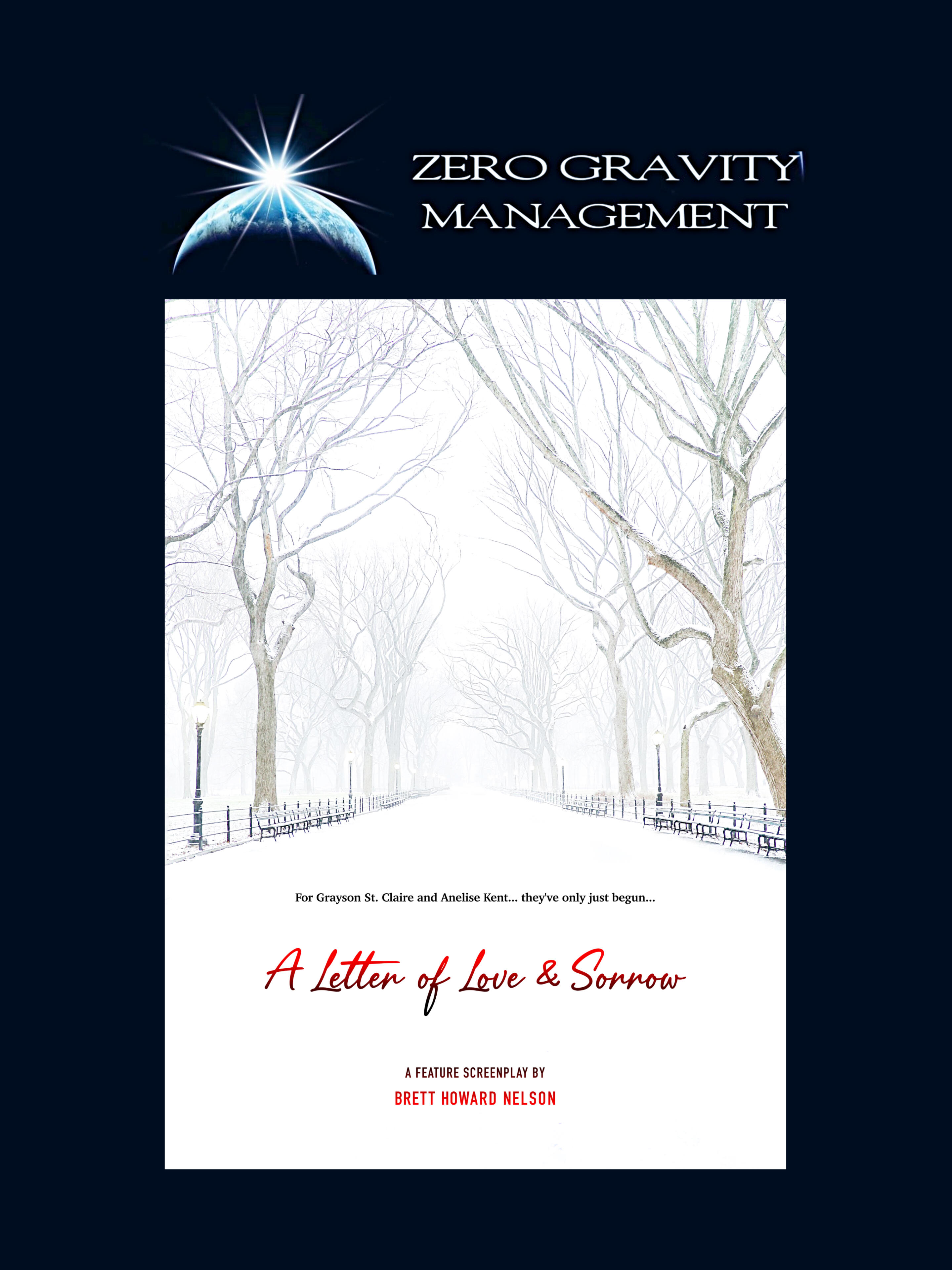 A LETTER OF LOVE & SORROWInspired and based on the 21-time award-winning short script, The LetterLOGLINE: After losing her job, a woman is consoled by a kind man in Central Park, but their budding romance is shattered by unexpected tragedy.TAGLINE: For Grayson St. Clair and Anelise Kent… they’ve only just begun…GENRE: Drama, Romance, Tragedy, Character-DrivenPAGES: 106COMPS: Dear John; Aftersun; Past Lives; BrooklynPITCH DECK: Available upon request.STATUS: Available.
